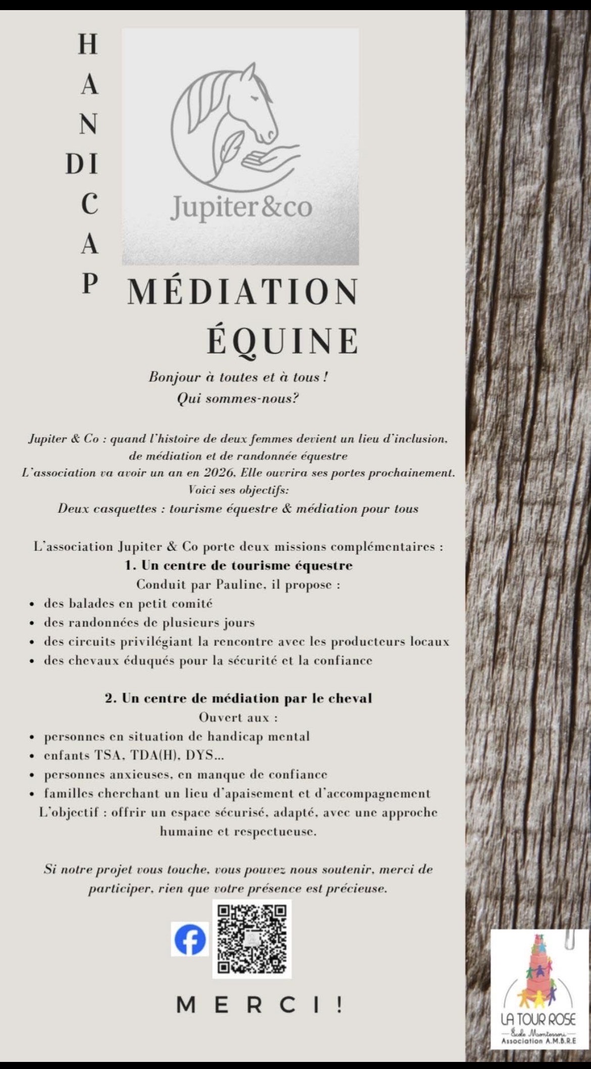 Notre amitié, née de nos parcours de mamans, nous a conduites à créer l’association Jupiter & Co — Jupiter étant le cheval de Pauline, au cœur du projet.